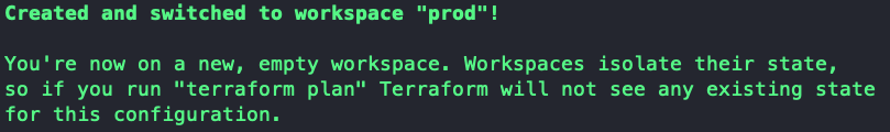 $ terraform workspace new prod