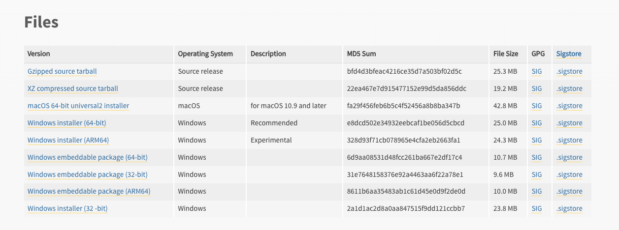 Official Setup Python ์ก์ ์ ๋ณด๋ฉด versions-manifest.json ์ Python ์ ๋ค์ด๋ฐ์ ์ ์๋ URL ์ด ๋ช ์๋์ด ์์ฃ .