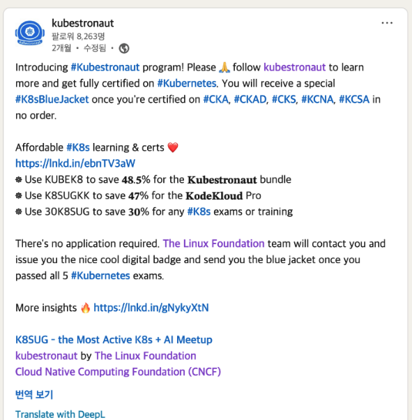 CKAD ๊น์ง ์ทจ๋ํ๋ฉด์ kubestronaut ์ ์๊ตฌ ์กฐ๊ฑด์ ์ถฉ์กฑ์์ผฐ์ต๋๋ค!