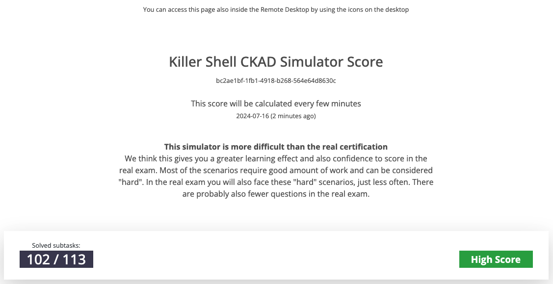 KCSA ์ KCNA ๊ฐ ์ด 90๋ถ์ผ๋ก ์งํ๋๋ ๊ฐ๊ด์ ์ํ(Mutliple Exam) ์ด์๋ค๋ฉด, CKAD, CKA, CKS ๋ ์ด 2์๊ฐ์ผ๋ก ์งํ๋๋ ํธ์ฆ์จ ์ํ์ ๋๋ค. ๋ฐ๋ผ์ ์ํฉ์ด ์ฃผ์ด์ง๋ค๋ฉด ๊ทธ ์ํฉ์ ๋ง๊ฒ ์ฟ ๋ฒ๋คํฐ์ค ๋ฆฌ์์ค๋ฅผ ๋ฐฐํฌํ๋ฉด ๋ฉ๋๋ค.