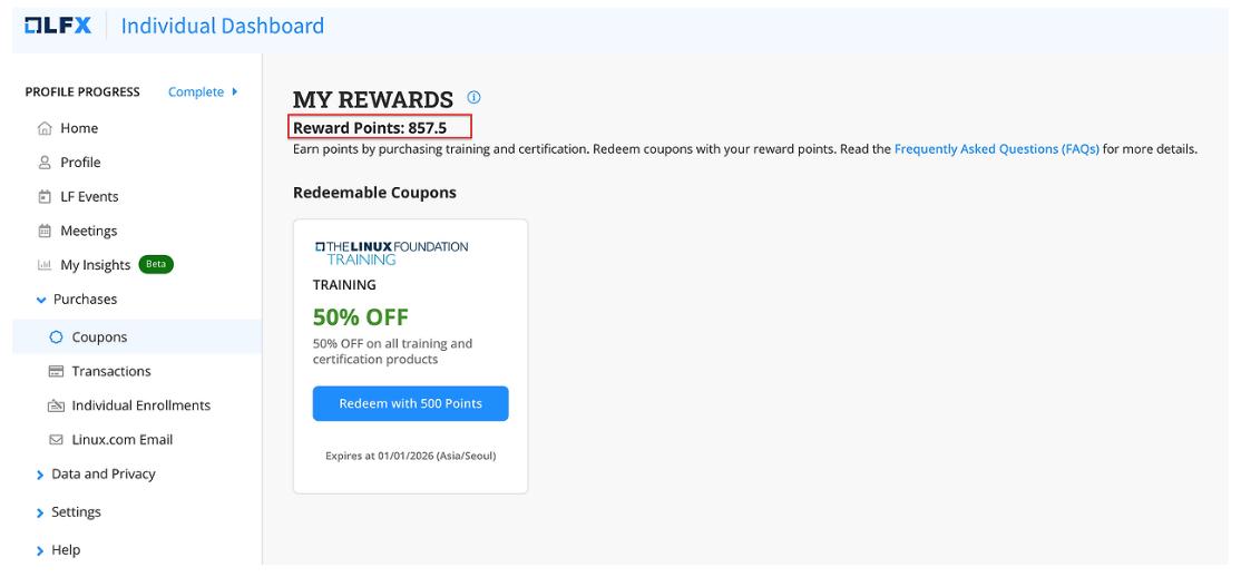 ๋ ๋ฆฌ๋ ์ค ํ์ด๋ฐ์ด์ ์์ CNCF ๊ด๋ จ๋ ๋์๋ณด๋๋ฅผ ์ ๊ณตํด์ฃผ๋๋ฐ, ์๋ ์ด๋ฏธ์ง์ฒ๋ผ ์ฟ ๋ฒ๋คํฐ์ค ์ํ์ ๋ณด๊ฒ๋๋ฉด Reward Points ๋ผ๋ ๊ฒ์ ์ค๋๋ค. 500 ํฌ์ธํธ๋ก 50% ์ฟ ํฐ์ ๊ตฌ๋งคํ ์๋ ์์ต๋๋ค.