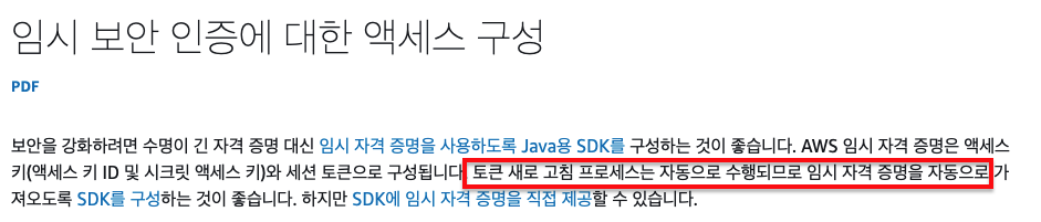 AWS SDK for JAVA ๊ฐ์ ๊ฒฝ์ฐ ๋คํํ ๋ง๋ฃ๋๊ธฐ ์ง์ ์ ์์์ ์๋์ผ๋ก ๊ฐฑ์ ํด์ค๋ค๊ณ ํฉ๋๋ค.