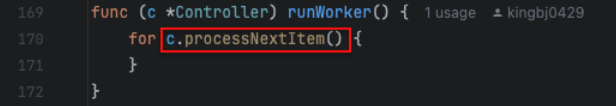 - runWorker ์์๋ processNextItem() ์ด false ์ผ๋๊น์ง for{} ์ ํตํด ๋ฌดํ์ ์ผ๋ก ๋๊ฒ ๋ฉ๋๋ค.