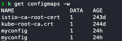 ๋ํ k get configmap -w ์ ๊ฒฐ๊ณผ๊ฐ ๋์ผํ๋ค๋ ๊ฒ์ ํ์ธํ ์ ์์ต๋๋ค.