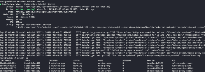 ๋ง์ฐฌ๊ฐ์ง๋ก kubelet ๊ณผ crictl ์ ํตํด ์ปจํ ์ด๋๋ฅผ ํ์ธํด์ค๋๋ค.