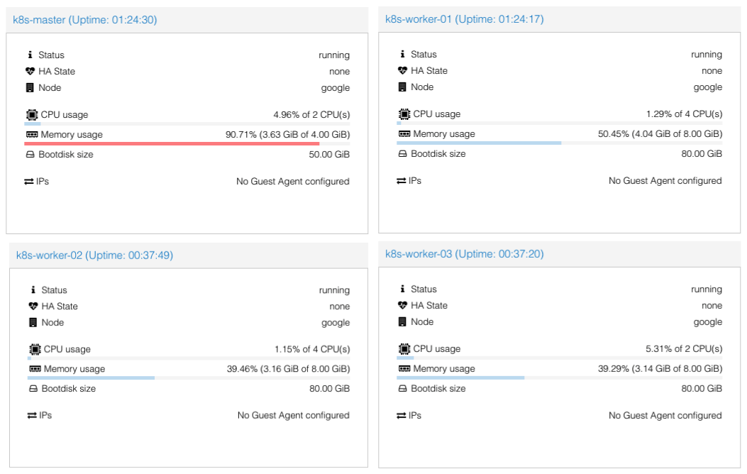 k8s-worker-03 ๋ 4CPU ๋ฅผ ์ฃผ๊ณ ์ถ์์ง๋ง.. ์ถํ ๋ค๋ฅธ๊ณณ์์ ํน์ ๋ชจ๋ฅผ CPU ๋ฅผ ์ฌ์ฉํ ์ ์์ผ๋ 2CPU ๋ง ์ฃผ์์ต๋๋ค.