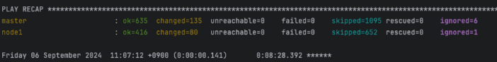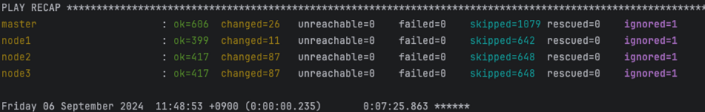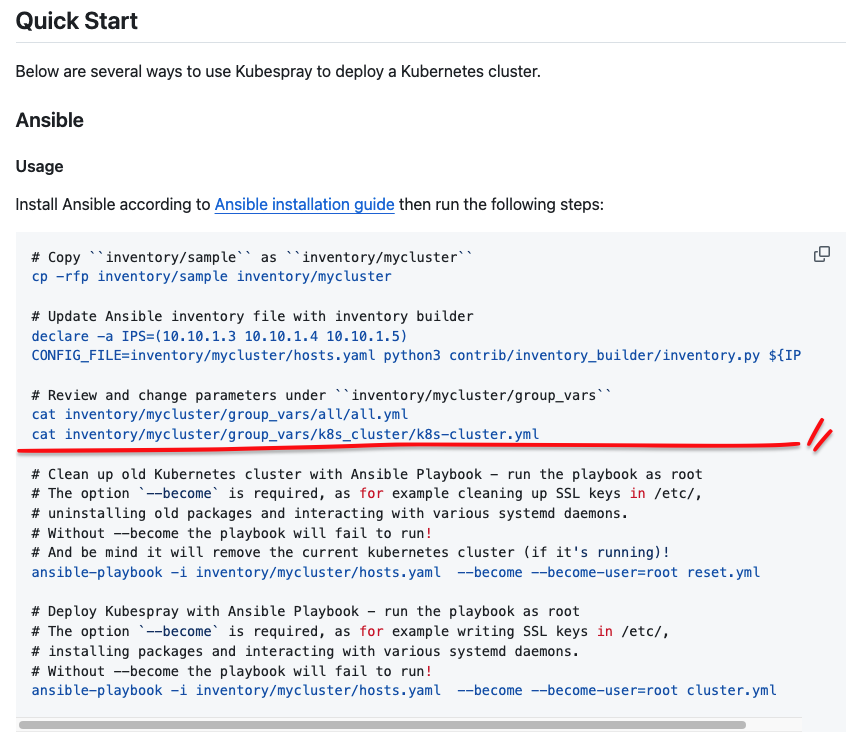 $ ansible-playbook -i inventory/mycluster/inventory.ini cluster.yml -k -K