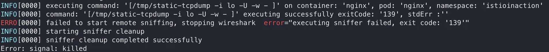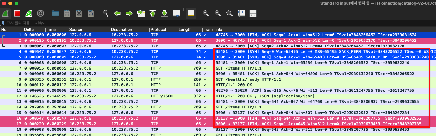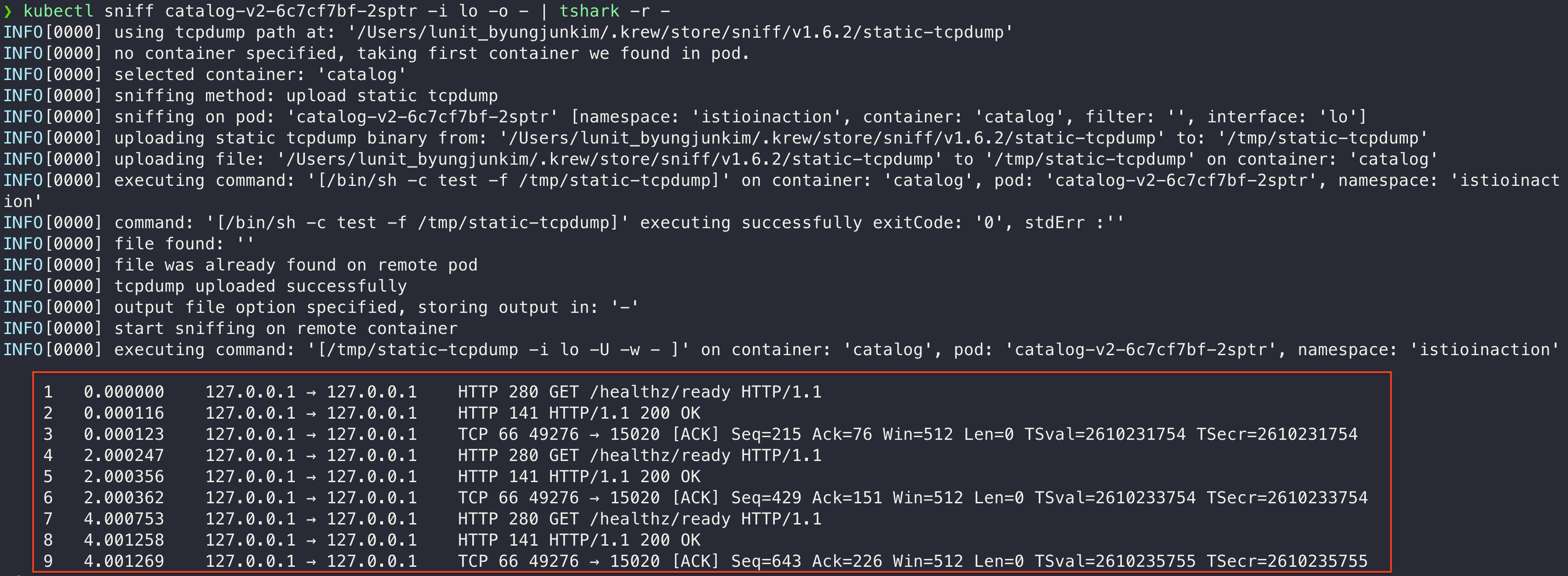(Istio Proxy๋ ๊ธฐ๋ณธ์ ์ผ๋ก tcpdump๊ฐ ์์ผ๋ ์์ธ๋ก ๊ด์ฐฎ์์ง๋?!)