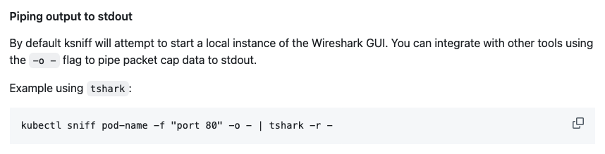 ๋ค์ ๋ณธ๋ก ์ผ๋ก ๋์์์ ksniff ๋ tcpdump ๋ฅผ ์ฌ์ฉํด ํ๋์ ๋คํธ์ํฌ ํธ๋ํฝ์ ํฌ์ฐฉํ๊ณ ์ด๋ฅผ ์์ด์ด์คํฌ๋ก ๋ฆฌ๋ค์ด๋ ํธํ๋ kubectl ํ๋ฌ๊ทธ์ธ์ ๋๋ค.