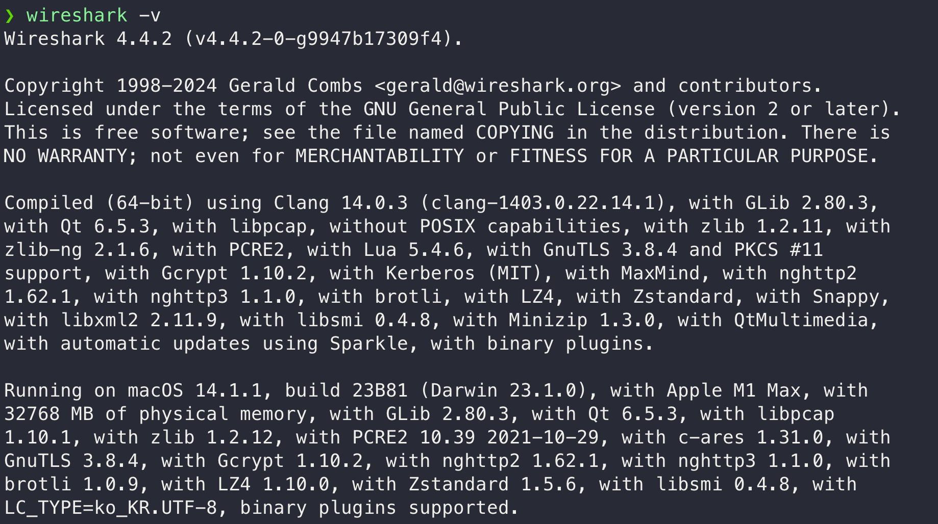 $ wireshark -v