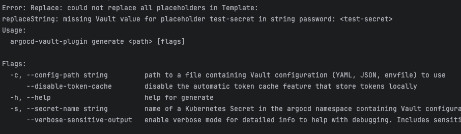 argocd-vault-plugin generate "." --verbose-sensitive-output ๋ช ๋ น์ด๋ฅผ ์ฌ์ฉํ๋ฉด ๋ฉ๋๋ค.