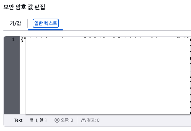 AWS Console ์์ ๋ณด๋ฉด ๋จ์ํ ์ฌ๋ฌ ๊ฐ์ ์ํฌ๋ฆฟ๋ค์ด ํ์ค ํ์ค ํ ์คํธ๋ก ์ ์ฅ๋๋ ๊ฒ ๊ฐ์ง๋ง, ์ค์ ๋ก ์ ๊ฐ๋ค์ Json ํํ๋ก ์ ์ฅ๋ฉ๋๋ค.