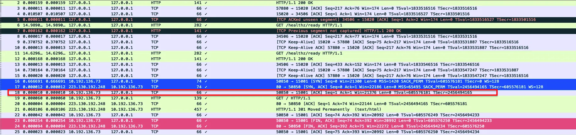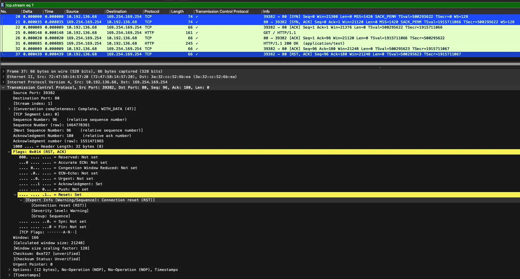 Connection Refused ์ ๊ด๋ จ ์๋ RST ํ๋๊ทธ๊ฐ ์๋ ๊ฑธ ํ์ธํ ์ ์์ต๋๋ค.