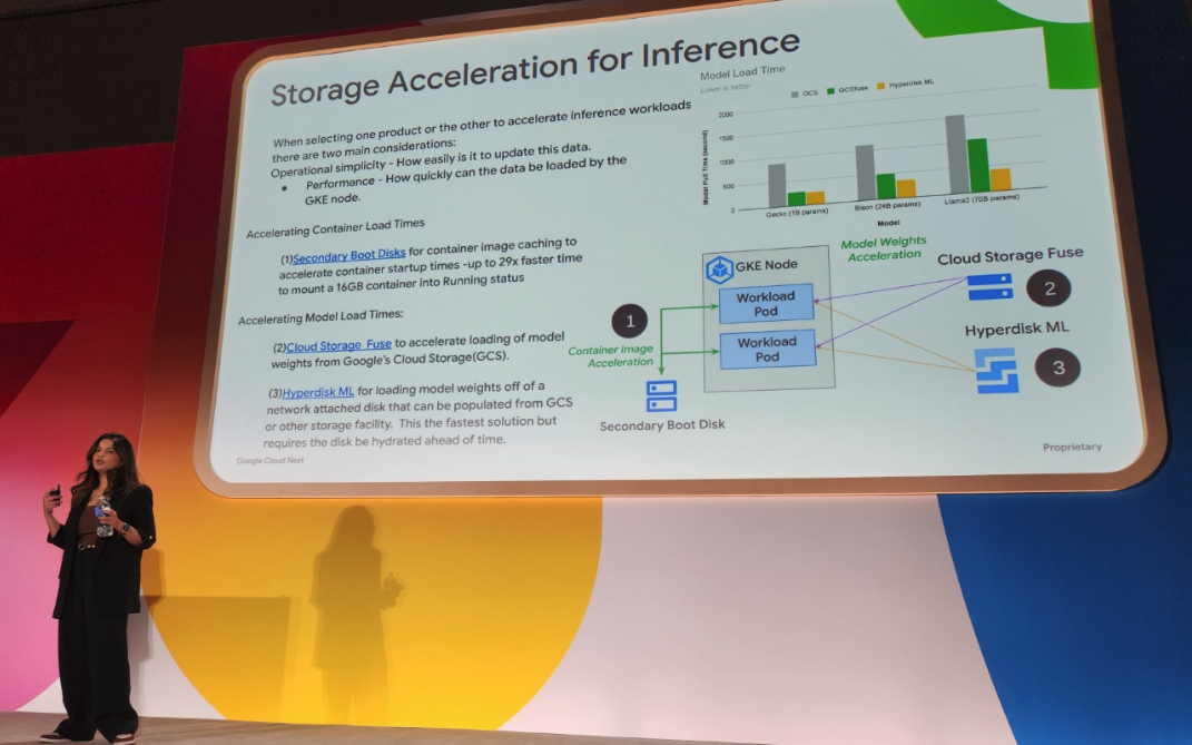 ๊ฒฐ๊ตญ AI Workload ๋ ์ด๋์ ๋ผ์ด์ง ์๋๊ฐ ๊ด๊ฑด์ธ๋ฐ Secondary Boot Disks, Cloud Storage Fuse ๋ฑ์ ์ด์ฉํ๋ฉด ์ด๋ฅผ ๋จ์ถ์ํฌ ์ ์๋ค๊ณ ํ๋ค. ๋ ์ธํผ๋ฌ์ฑ ๊ด๋ จํ IO ๋ HyperDisk ML ์ ์ด์ฉํ๋ผ๊ณ ํ๋ค.