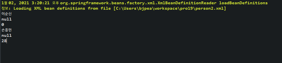 //person.xml์์์ ๋น ๊ฐ์ฒด์ id๋ฅผ ๊ฐ์ ธ์์ค๋๋ค. id๋ ๊ณ ์ ์ด๋ฆ์ด๋ฏ๋ก ์ค๋ณต๋์ง ์์ต๋๋ค.