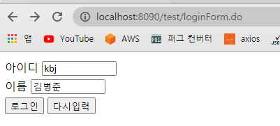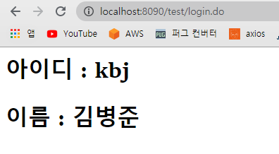 ๋ค์๊ณผ ๊ฐ์ view์์ ์์ด๋๋ฅผ kbj, ์ด๋ฆ์ ๊น๋ณ์ค์ผ๋ก ์ ๋ ฅํ๊ณ ์ ์กํฉ๋๋ค.