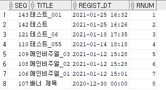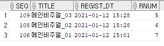 , ROW_NUMBER() OVER( ORDER BY REGIST_DT DESC) AS rnum