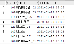 ๊ทธ๋ฆฌ๊ณ ์ ํ ์ด๋ธ์ ๋ก์ฐ๋ฅผ ๋ ์ง(REGIST_DT)๋ก ์ ๋ ฌํ๊ณ ์ถ์ต๋๋ค.